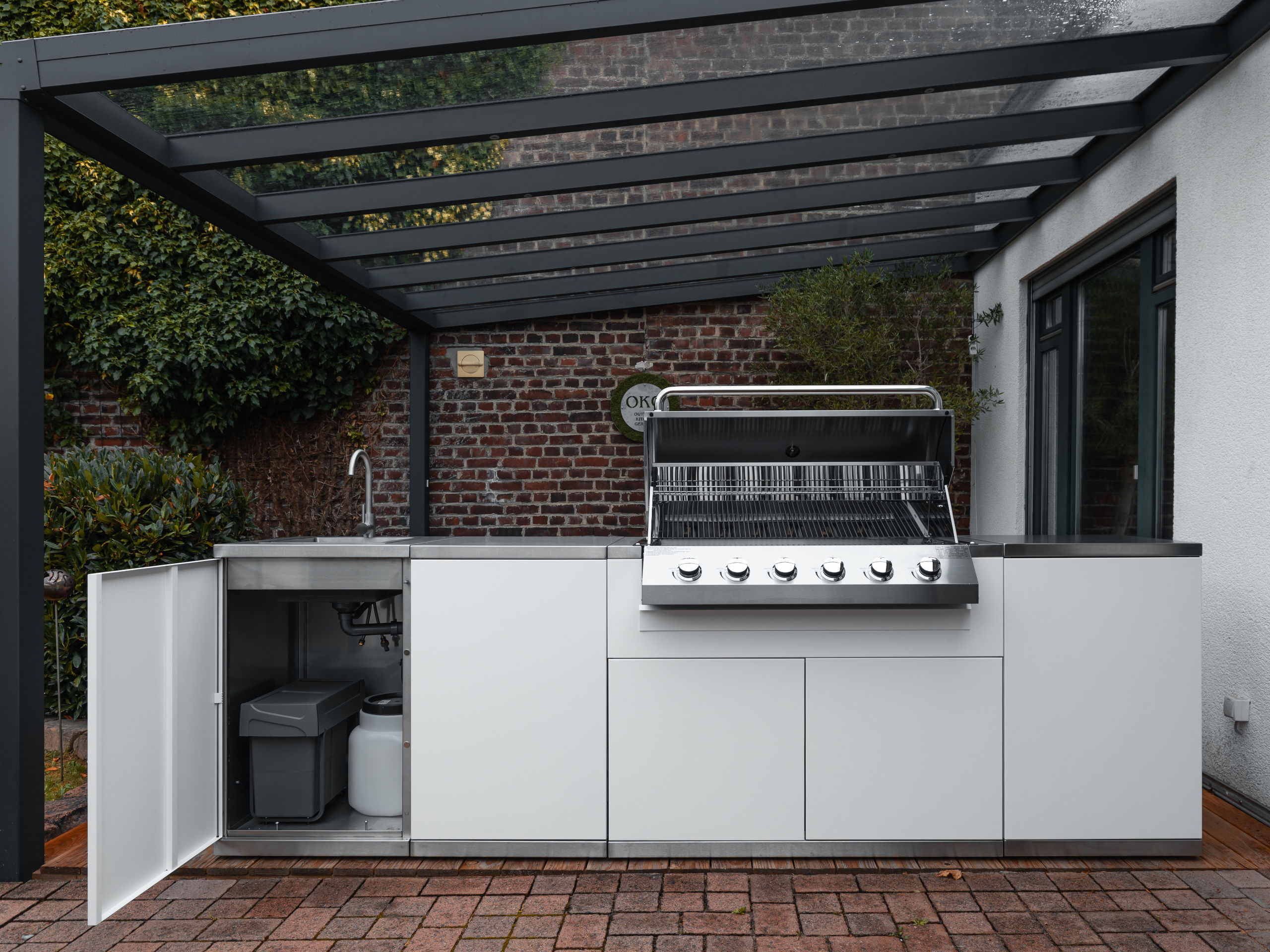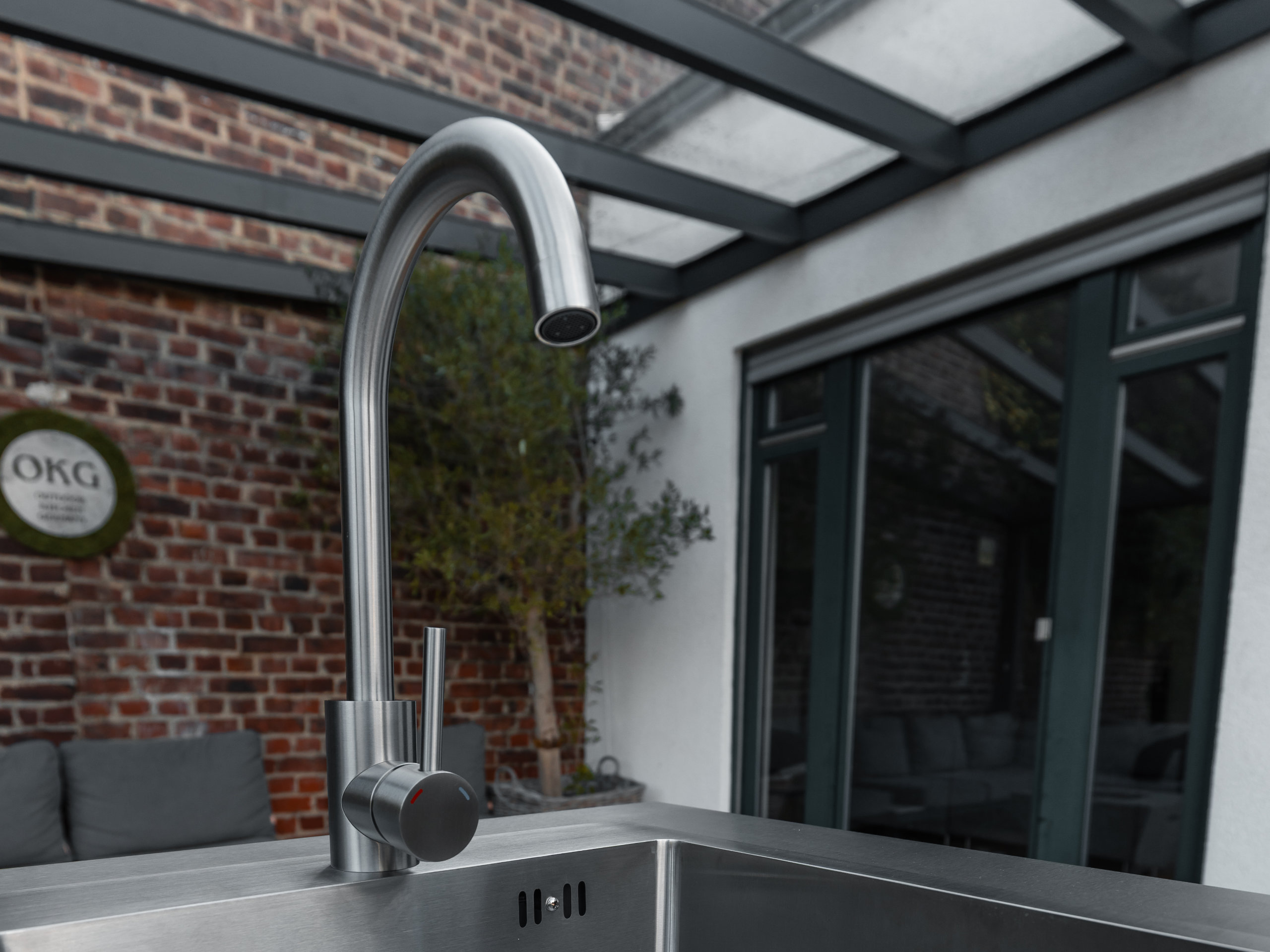Dank wetterfester Materialien ist die Spüleinheit rostfrei, pflegeleicht und für den dauerhaften Einsatz im Freien gemacht. Wie alle Module der OKG classic one lässt sich auch das water one über das Click & Cook™ System mühelos und ganz ohne Werkzeug integrieren. Die Lieferung erfolgt vollständig vormontiert – du musst nichts aufbauen, nur anschließen und loslegen.