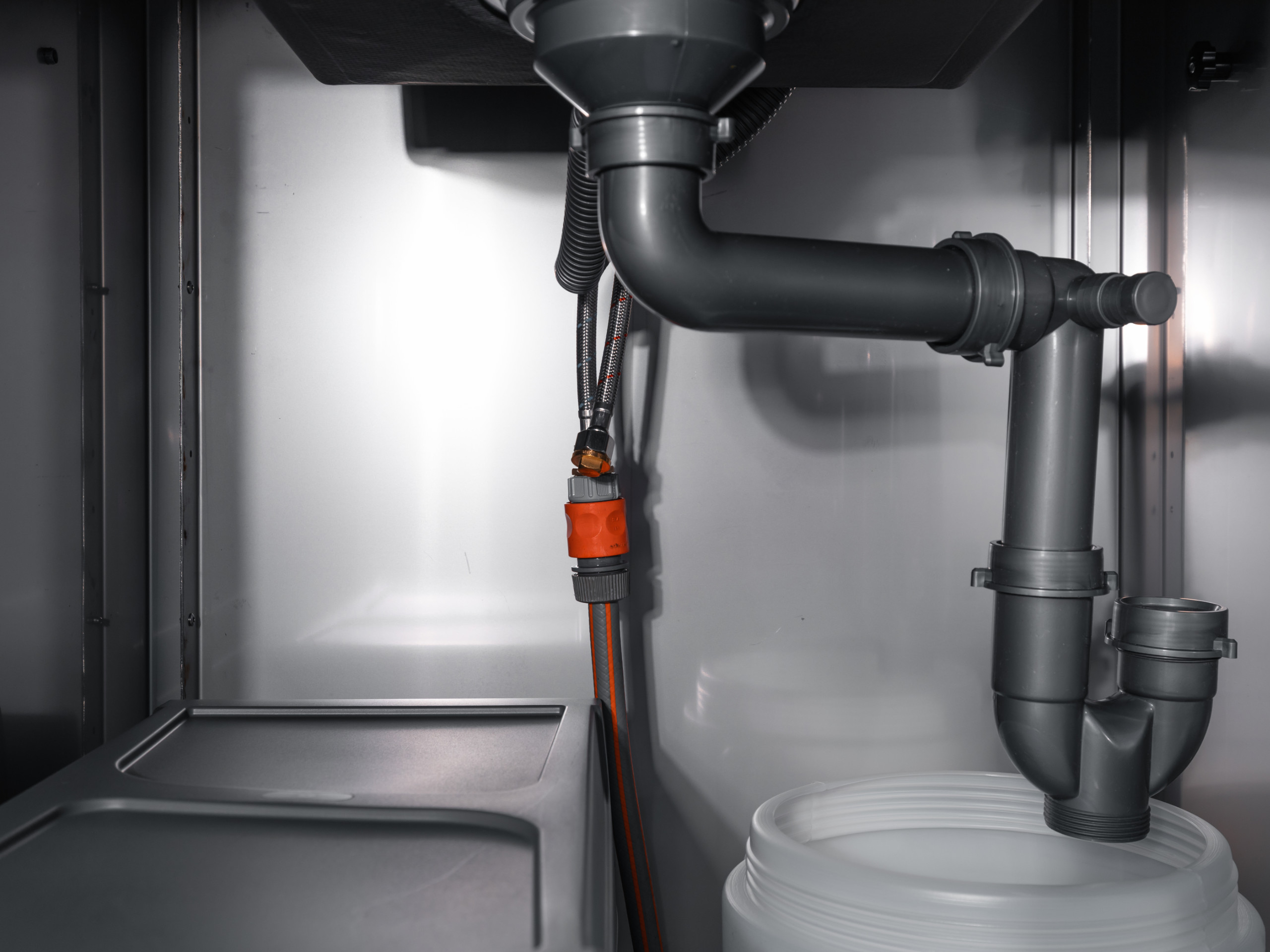 Haben unseren Gartenschlauch von hinten dran gemacht und haben nun eine Außenspüle – mega praktisch